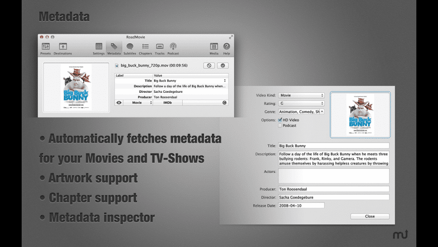 The package you are about to download is authentic and was not repacked or modified in any way by us. Each download we provide is subject to periodical scanning, but we strongly recommend you check the package for viruses on your side before running the installation. The download version of RoadMovie for Mac is 2.7.4. The application is licensed as trialware. Please bear in mind that the use of the software might be restricted in terms of time or functionality.